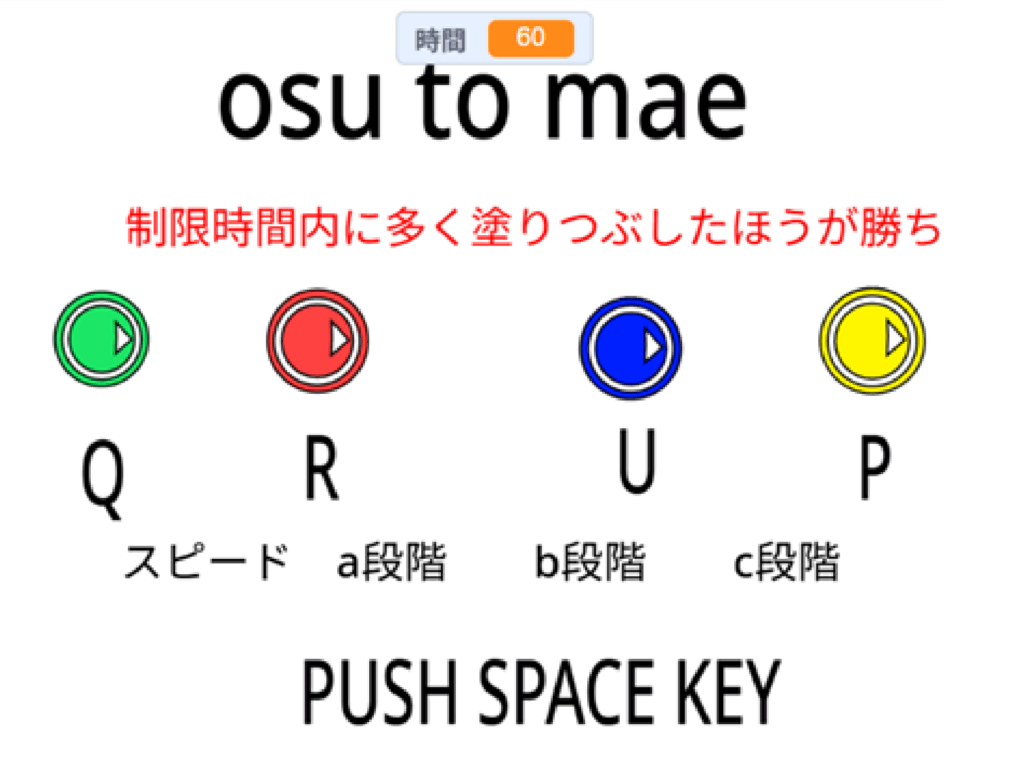 タイトル画面で自分が操作するキー(Q / R / U / Pのいずれか)