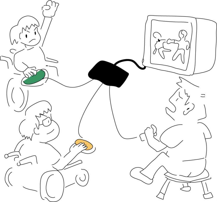 ゲームの場合ゲームコントローラのボタンが固くて押せないなど、スイッチを使ってゲームをする場合に使います。などの利用方法があります。 | |